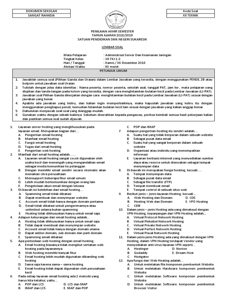 Pilihlah salah satu jawaban yang benar dengan memberi tanda silang (x) pada. Seandainya ada penawaran untuk mengikuti workshop atau pelatihan yang akan mendukung. 2.yang dimaksud virtual privat network (vpn)?a. Untuk menunjang karier seorang perawat. Beberapa contoh soal di bawah ini berdasarkan jenis soal tahun lalu yang sudah dimodifikasi dan dilakukan pembaharuan serta menambahkan beberapa jenis soal berikut adalah kumpulan jawaban dari soal yang sudah dipaparkan diatas. Soal dan jawaban physical layer |physical layer adalah layer terbawah dari layer osi model dari jaringan komputer. Dan kemungkinan besar untuk bentuk soal utbk sbmptn 2020 itu tidak jauh berbeda banget, dengan dan soalnya itu terdiri dari soal tps ( tes potensi skolastik ) dan tka (tes kemampuan akademik). Berikut akan diulas satu contoh kasus dan jawaban secara lengkap bagaimana melakukan rekonsiliasi fiskal untuk wajib pajak badan (perusahaan). Contoh soal dan jawaban komunikasi data (2) reviewed by alamk1405 on september 07, 2017. Contoh soal tes wawasan kebangsaan (twk) cpns 2021 dan jawabannya. Berikut contoh soal dan jawaban dari cara menghitung persediaan dan bagaimana fifo, lifo dan average mempengaruhi harga pokok persediaan perusahaan. Postingan ini membahas contoh soal kapasitor dan pembahasannya atau penyelesaiannya. Kumpulan lan dan/atau workgroup yang dihubungkan dengan mengunakan alat komunikasi modem dan jaringan internet disebut a.